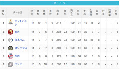 【4/12】パ・リーグ順位表|二連敗…日ハムの現在順位がこちら