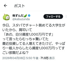 投資家さん、資産が多すぎて大学生を驚愕させてしまう