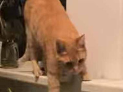 ネコはまだ寒いようだ。うちの壁にはパネルヒーターがある。隙間にズズっと♪ → こうなります…