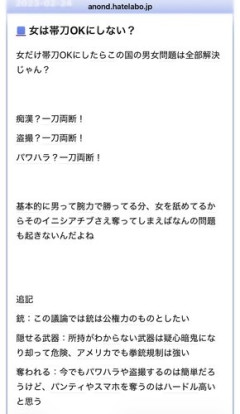 1: 2026/04/12(日) 13:33:09.663 ID:qofwYM+I0 imgur.com/7lPlj1E 2: 2026/04/12(日) 13:35:24.286 ID:atrp6xeR0 既にバカ丸出しの付け爪してるじゃん 3: 2026/04/12(日) 13:34:01.741 ID:i47Ij8Y+0 銃社会にするのと変わらん事態にしかならん ★よく読まれている記事 【画像】オタクくん、女の服の構造がわからない… 【動画】大谷翔平、女性差別してガチ炎上 【衝撃】もう中学生(43)と結婚したタレント、美人すぎると話題に 【画像】女さん「え、まって。男の会話………つまんな」 【画像】杉本彩さん(57)、完全に近所のマダムと化してしまう 【動画】JC13歳、初めての脇脱毛 【動画】強者男性、つばを吐いてきた女に制裁を加える 【衝撃】アメリカの美女排泄インフルエンサー、家電に尿をかけて訴えられる 【動画】チビ女さん、暴力でホストを一方的に追い詰めてしまう 【画像】セクシー女優さん、アイドルと比べられてお気持ち表明 【画像】こんなお尻で爆買いする、セクシーセレブ現る 【画像】女性声優、舞台で共演したイケメンたちと写真を撮りまくってしまう 【画像】女の子が行為の後にして欲しいことがこちら 【画像】広瀬すずの私服、ヤバい 【画像】現役女子バレー選手、ちょっとセクシーが過ぎる…