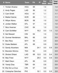 大谷翔平 OPS.940 防御率0.00 12回←これでWAR1位じゃないって欠陥じゃね?