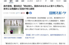 1 : 高市早苗首相(自民党総裁)は12日、東京都内のホテルで開かれた第93回党大会で行った総裁演説で、持論の憲法改正について「決断のための議論」の必要性に触れ、「新たなページをめくるべきかどうか、国民のみなさまに堂々と問おうではありませんか」と呼び掛けた。 略 高市首相は、憲法改正について「(立党以来の)わが党の党是」とした上で、「徹底した議論を行った後に意見集約をはかり最後に決断をする。これが民主主義のベースであり政治の役割であるはず。議論のための議論ではなく、政治家が国民の負託に応えるために行うべきなのは決断のための議論だ」と強調。「どのような国をつくり上げたいのか、その理想の姿を物語るものが憲法。私たちの物語、理想の日本国を文字にして、歴史という書物の新たなページに刻もうではありませんか」とした上で、「その新たなページをめくるべきかどうか、国民のみなさまに堂々と問おうではありませんか」と訴えた。「立党から70年。時は来ました」とも呼び掛け「幅広い世代、多様な経験、豊かな専門知識をもった議員を擁するわが党の強みを、憲法改正に向けて結集していきましょう」とも語った。 続きはソースで…