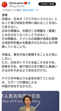 1:2026/04/12(日) 21:10:21.62 ID:DlhonCu90これ凄いね!𝕏 が自動翻訳して伝えるようになった結果、日本に対する擁護論と中国に対する批判が世界各国(主に自由主義国)から殺到してる。中国の今までの振る舞いが酷すぎたんだなぁ…。 — 新宿会計士 (@shinjukuacc) April 12, 2026↓転載元スレッド:…