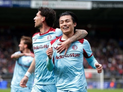 【サッカー】上田綺世が圧巻ヘッド弾で今季リーグ戦23ゴール目 自己最多記録を更新…上位対決は痛み分け [久太郎★] 久太郎 ★ 2026/04/12(日) 23:34:56.71 ID:DGAIynVo9.net オランダ1部フェイエノールトは4月12日、エールディビジ第30節でNECナイメヘンと対戦し、1-1で引き分けた。スタメン出場した日本代表FW上田綺世が前半18分に今季23ゴール目を決めたが、後半アディショナルタイムに追いつかれた。 【実際の映像】「ジャンプ高すぎ!」「コースえぐい」上田綺世が決めた圧巻ヘディング弾 〓無料ライブ配信中!〓登録不要、誰でもお楽しみ頂けます〓♀️先制は2位フェイエノールト〓️#ハジ・ムサ のコーナーキックに#上田綺世 がヘディングで合わせて先制!今季エールディヴィジ23ゴール目〓️〓エールディヴィジ第30節⚔️NECナイメヘン v フェイエノールト〓 pic.twitter.com/ptWWaSPVQp— U-NEXTフットボール (@UNEXT_football) April 12, 2026 試合は前半18分、右サイドからのコーナーキックをFWアニス ・ハジ ムーサが蹴り込むと、上田が相手DFを大きく超えるハイジャンプからヘディングでゴール左上に決めた。ロビン・ファン・ペルシー監督も、上田のゴールにガッツポーズを見せた。 上田は前線でボールを収めて起点になろうとしたが、相手DFの厳しいマークにあい、何度も倒される場面があった。しかし、あまりファール判定ももらえずに不満をあらわにするシーンもあった。 この試合では、DF渡辺剛、MF佐野航大もスタメン出場。後半途中からはFW小川航基も出場し、4人の日本代表がピッチに立った。上田は後半43分でピッチを退き、後半アディショナルタイムにFWダニーロが右サイドのクロスからダイレクトシュートを決めて、1-1に追いついた。 上田にとって3月15日の第27節エクシルオール戦以来、リーグ戦3試合ぶりのゴールとなり、得点ランキングトップを独走。2022-23シーズンにベルギー1部セルクル・ブルージュで記録した公式戦23ゴールを上回り、今季の公式戦24ゴール目で、1シーズンにおける自己最多ゴール数を更新した。…