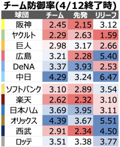 【画像】12球団防御率ランキングwwwwwwwwwwwww