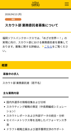 福岡ソフトバンクホークス、分析ができるスカウトを募集開始!!