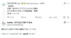 1: 2026/04/13(月) 20:15:34.58 頼むから別の子供の遺体であってくれ— tootot。カクヨムで書いてるよ (@aos761264249118) April 13, 2026 ※関連記事 【画像】この漫画の「ダメ人間」と付き合っている彼女の話、少し怖くて草wwwww…