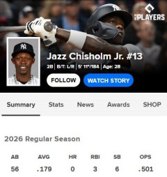 大谷の50-50を超えると言っていたチザムはん、15試合 打率.179 0本 6盗塁 OPS.501