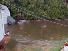 裏庭にできた大きな水たまり。 ヒャッハー! ワンコさんはこんな感じ……