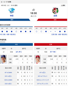 【ドラゴンズ実況】4/14 中日vs広島(豊橋)18:00~先発:金丸【中継:東海TV Jスポ2 DAZN他】