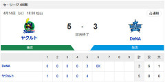 【試合結果】[2026/4/14] DeNAベイスターズ3-5ヤクルトスワローズ 五回終了降雨コールドで逆転負け