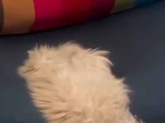 ソファにいる謎の生物。 もっふもふ♪ その正体はこんな感じ……