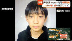 ◇ 1: 名無し 2026/04/14(火) 20:01:44.15 ID:KTatklf89 遺体は安達結希さん(11)と判明 大きな刺し傷は確認されず 死亡は3月下旬ころ 警察は事件性の有無含め捜査京都・南丹市の山林で見つかった遺体について、身元が行方不明となっていた11歳の男子児童であることがわかりました。 京都・南丹署前から関西テレビ・酒井麻衣記者が中継でお伝えします。 警察は13日に山林で発見された遺体について14日午前から司法解剖を進めていましたが、遺体は3月23日から行方不明になっていた11歳の安達結希さんと判明したと発表しました。 13日午後4時45分ごろ、安達さんが通う小学校から南西に約2kmほど離れた山林で遺体が見つかり、身に着けていたトレーナーは安達さんが着ていたものと同じデザインでした。 警察の司法解剖の結果、遺体は安達結希さんで、死亡したのは3月下旬ごろ、死因は不詳だということです。 また、明らかな刺し傷など遺体に大きな外傷は確認されていません。 警察は今後、事件性の有無なども含めて捜査する方針です。 ソース/FNN ◇ 3: 名無し 2026/04/14(火) 20:02:20.33 ID:BliPIsoR0 窒息死? ◇ 290: 名無し 2026/04/14(火) 20:22:46.15 ID:hhZ91QV30 >>3 外傷が無ければそれしかないよな…