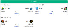 4/14セ順位 燕-虎-==兎-//-=鯉-星-=竜