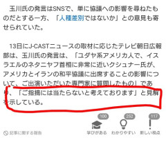 【画像】玉川徹さん、番組での発言がイスラエル大使に見つかりテレ朝に正式抗議されてしまう