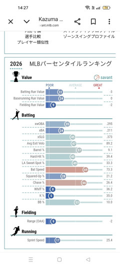 【悲報】岡本和真さん、守備指標ですらもMLB下位6%であることが判明wwww