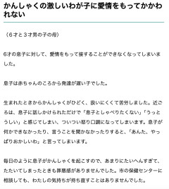 1. 匿名@ガールズちゃんねる ■子どもがかんしゃくを起こさなくなる方法はちゃんとあるのです。真の専門家にかかわり方を学びましょう 6年間、たいへんな思いをされてきたことと思います。発達の遅れがあり、育てにくいと感じ続けてきたお子さんを、おそらくはたったひとりで(ご主人がいたとしても)支えてこられたのでしょう。 まず緊急にしていただきたいことは、本当の専門家のいる機関を訪ねることです。 信頼できる機関には、医師、臨床心理士、ソーシャルワーカーが専門チームを組んで、親子のケアにあたっているものです。受診したら、あなたが思っていること、悩んでいることをどんどん伝えることです。がまんしてはいけません。どうしてほしいか、どの部分を支えてほしいのか、正直に言うといいのです。正しく対応してくださるはずです。 大事なことは、定期的に通い続けることです。一度受診したら、必ず次の予約をとりましょう。 行動は、できるだけ早く開始してください。このままでは子どもへの嫌悪感が強くなり、親子関係が不幸なものになりかねません。 2026/04/15(水) 13:40:12…