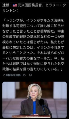 1: 2026/04/15(水) 18:35:54.16 ID:GlfPLeC2r ヒラリークリントン「トランプはホルムズ海峡が閉鎖される可能性があるのを知りませんでした。普通の人ならイランに手を出したら真っ先にホルムズ海峡を閉鎖される可能性を考えます」 imgur.com/EtjYGyZ 2: 2026/04/15(水) 18:36:57.18 ID:FyM0W+ze0 消せ消せ消せ 3: 2026/04/15(水) 18:36:46.89 ID:zLowaYTt0 これじゃおやびんが馬鹿みたいやん😭…