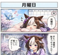 0: 名無しのトレーナー 26/04/13(月)04:18:27 No.1419896973 AIに4コマ描かせたよ 1: 名無しのトレーナー 26/04/13(月)04:19:45 No.1419897008 ちゃんと4コマあって偉い! 2: 名無しのトレーナー 26/04/13(月)04:20:20 No.1419897025 なんかこのスペちゃん色っぽくない? 3: 名無しのトレーナー 26/04/13(月)04:20:50 No.1419897043 ダルいダルいうるせぇな! 4: 名無しのトレーナー 26/04/13(月)04:21:17 No.1419897051 ねぇこれ風邪… 5: 名無しのトレーナー 26/04/13(月)04:33:23 No.1419897352 きらら作品くらいのクオリティはあるな 6: 名無しのトレーナー 26/04/13(月)04:35:30 No.1419897402 ダルそう 7: 名無しのトレーナー 26/04/13(月)04:36:34 No.1419897432 つまんなさすぎておもろい 8: 名無しのトレーナー 26/04/13(月)05:12:05 No.1419898277 ついに眠いしダルい 9: 名無しのトレーナー 26/04/13(月)05:19:26 No.1419898471 月曜日のだるさはよく表現出来てると思う 10: 名無しのトレーナー 26/04/13(月)05:25:10 No.1419898660 特になんの主張もなくてスペちゃんがだるそうなだけだからこそちょっと面白いまである 11: 名無しのトレーナー 26/04/13(月)05:32:40 No.1419898863 7月月円火木木全8 月 12: 名無しのトレーナー 26/04/13(月)08:13:07 No.1419910526 (これ私のことだ…) 13: 名無しのトレーナー 26/04/13(月)08:39:39 No.1419914387 月曜日の位置が勝手に動くな 14: 名無しのトレーナー 26/04/13(月)08:45:19 No.1419915211 プリコネの4コマくらいのクオリティはある 15: 名無しのトレーナー 26/04/13(月)08:47:53 No.1419915597 ガイ 16: 名無しのトレーナー 26/04/13(月)09:31:50 No.1419923625 金曜日じゃねーか! 引用元: 管理人 よく見たら金曜日わろたw…