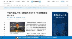 1 : 中国外務省、沖縄・与那国町長のミサイル部隊配備容認に懸念 | 毎日新聞 沖縄県与那国町長が、防衛省が2030年度に陸上自衛隊与那国駐屯地で予定する地対空ミサイル部隊の配備を巡り、容認する意向を示したことを受け、中国外務省の郭嘉昆副報道局長は15日の記者会見で「自衛と専守防衛の範囲をはるかに超えている」と懸念を示した。全文はソースで…