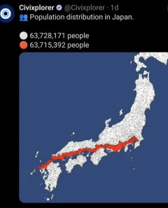 韓国ネットの反応 韓国のネット掲示板で、日本の人口分布を色分けした地図が大きな話題を呼んでいます。公開された地図では、日本列島の太平洋側に引かれた細い「赤いエリア」と、それ以外の広大な「白いエリア」に、それぞれ約6370万人ずつが居住していることが示されています。つまり、日本の人口の約半分が、この細いラインに密集しているということになります。しかし、韓国のネットユーザーたちが注目したのは、その「密集度」よりも、韓国との構造的な違いでした。日本の首都圏集中率: 約30%韓国の首都圏集中率: 約50%一見すると日本も太平洋側に偏っているように見えますが、実際には大阪、名古屋、福岡といった地方の中堅都市が機能しており、ソウルに人口の半分が集中する韓国に比べれば、人口分散がかなり進んでいるという分析です。日本の製造業を支える地方のインフラや、各地に点在する中核都市の存在。この地図から透けて見える「日韓の社会構造の差」について、韓国の掲示板では驚きの声が寄せられています。この記事へのコメントはこちらからお願いします。…