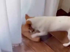 床をフキフキするワンコさん。 なんてお利口さんなんだ! かわいい掃除屋さんは こんな感じ……