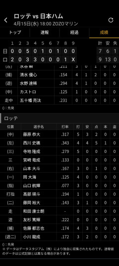引用元: それでも動く名無し 2026/04/16(木) 14:39:57.99 ID:Mt0D4QO2M 2: それでも動く名無し 2026/04/16(木) 14:40:57.13 ID:Kw/sMwrjd 山口と高部と言うポジポジしてた2人が揃ってグロになってるのが実にロッテらしい 3: それでも動く名無し 2026/04/16(木) 14:41:21.49 ID:e4VpsW1Oa 西川個人軍…