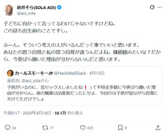 1: 2026/04/16(木) 18:58:44.84 この件について、ネット上の一部では「子供がいるのに言うのは意味が分からない」「自覚に欠けている」といった指摘が。 これに蒼井は「子どもに向かって言ってるわけじゃないですけどね。この話も出生前のことですし。ふーん。そういう考えの人がいるんだって事でいいと思います。 あなたの思う自覚と私の思う自覚が違うんだよね。価値観みたいな?だから、今更ばら撒いた理由が分からないんだと思います」と返信していた。 ※関連記事 伝説の元セクシー女優・蒼井そらさん、初対面で肉体関係を持った有名俳優を実名で暴露…