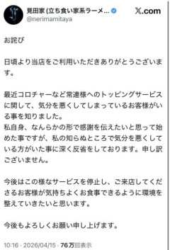 1: 2026/04/16(木) 06:41:42.03 ID:y/T3/+Wi0アイドルか?キャバクラか? 常連なのにサービスされない奴からのクレーム1番デカイだろ 新規客からクレームという引用ポストやリプばかり 2: 2026/04/16(木) 06:43:19.41 ID:AdpW/AhL0一見さんお断りのラーメン屋にすりゃいいじゃん3: 2026/04/16(木) 06:45:03.80 ID:XY/cRsT50内緒でやればいいもんやろそんなもん4: 2026/04/16(木) 06:47:25.19 ID:gFna/xwE0べつによくね5: 2026/04/16(木) 06:47:38.34 ID:83epyT9h0リピート率あげる戦略の一つだと思ってるがやり方が下手だったんだな -->…