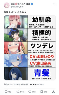 【画像】X「ラブコメの負けヒロインの特徴集めてみた!!」→60万wwwwwwwwwwwwww