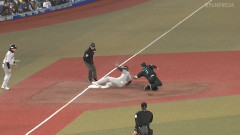 【珍プレー】 ロッテ・伊志嶺コーチ、ソトのインターセプトを肉体的阻止wwww