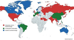 スレッド「ジョジョで言及された実在する国一覧」より。引用:Reddit(海外の反応)1万国アノニマスさん ジョジョで言及された実在する国一覧赤:キャラクターが行った国緑:キャラクターの国籍青:名前が出てきた国2万国アノニマスさんインターナショナル主義な荒木飛呂彦が大好きだ…