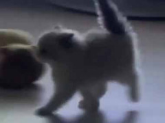 子猫と犬はゴハンの時間になった。部屋の入り口にはペットゲートがある → こうなります…