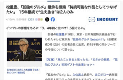 1 : 俳優の松重豊が16日、東京・日本外国特派員協会で行われた『孤独のグルメ Season11』(テレビ東京系)の記者会見に出席。約15年続く同シリーズの今後について語った。 略 さらに、「僕も本当に年齢的にもどこまで食べられるか分からないんで、次の人に譲るっていう道筋は作らなきゃいけないなと思ってる」と発言。後継者について具体名は挙げなかったものの「将来、持続可能な作品としてつなげていく方法を今必死で考えてる最中です」と強調した。 その際、単にバトンを渡せばいいという話ではないとも語った。「やっぱり負担が来る仕事ではある」とした上で、今の時代は「できるだけ役者さんに負担をかけずに、この仕事を続けていく方法を考える必要がある」と指摘。2代目を担う人物には、演技面だけでなく体調管理も含めて引き継いでいきたい考えを示していた。全文はソースで…