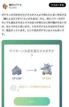 【画像】フェミ、ポケモンにもブチ切れる「ポケモンってオスが多いし強いのもオス。女性差別じゃん」
