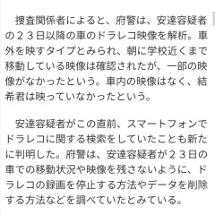 【悲報】安達容疑者の検索履歴が漏れる「死体 棄て方」、「ドラレコ 消し方」