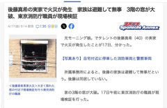 1 : 後藤真希の実家で火災が発生 家族は避難して無事 3階の窓が大破、消防庁職員が現場検証 元モーニング娘。でタレントの後藤真希(40)の実家で火災が発生したことが17日、分かった。 所属事務所によると、後藤の家族は避難して無事だという。後藤は同居していない。 家の3階の窓が大破。17日午前に消防庁の職員が現場検証を行った。 近所の住民によると、日付が変わるくらいの時間に消防車などが到着。火の手が大きく上がり、約30メートル離れた家の玄関先でも「凄いと感じるくらい」の煙が出ていたという。 東京都江戸川区にあり、近隣住民やファンからは“ゴマキ御殿”と呼ばれていた。…