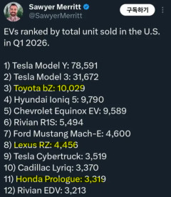 韓国ネットの反応 最近、米国市場における2026年第1四半期(Q1)の電気自動車(EV)販売台数ランキングが公開され、韓国のネット上で大きな衝撃が走っています。これまで「EVシフトに出遅れた」と評されることもあった日本の自動車メーカーですが、最新の統計では驚くべき躍進を見せています。注目すべきデータ: トヨタの「bZ4X」が10,029台を売り上げ、韓国勢の主力モデルであるヒョンデ「アイオニック5(9,790台)」を僅差で上回る結果となりました。トヨタだけでなく、レクサス「RZ」が4456台、ホンダ「プロローグ」が3319台と、それぞれ上位にランクイン。トップ12の中に日本ブランドが3つも名を連ねる形となりました。「やはり製造大国の底力は侮れない」という声が出る一方で、急激な順位変動に戸惑いを隠せない韓国のネットユーザーから驚きのコメントが寄せられています。この記事へのコメントはこちらからお願いします。…