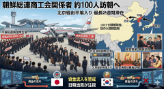 1: 名無し 2026/04/19(日) 08:39:42.56 ID:k9zXy5wA1 在日本朝鮮人総連合会(朝鮮総連)傘下の商工会に所属する自営業者らが100人規模で20日から北朝鮮を訪問することが14日、わかった。 2024年夏に朝鮮大学校(東京都小平市)の学生らが修学旅行名目で訪朝して以来の大規模な往来となる。 日韓の情報筋によると、訪朝団は20日に日本を出国して中国・北京経由で平壌入りし、最長で2週間程度滞在する予定。高官の表敬や親族訪問、企業視察などが目的で、ツアー代金は約50万円とされる。 商工会としての訪朝は、新型コロナウイルス対策に伴う国境封鎖措置が解除されて以降、初めてとみられる。 大規模訪朝団を通じた資金流入は北朝鮮への送金を禁じた制裁の抜け穴として利用される懸念があり、日韓の関係当局が警戒を強めている。 産経新聞 ■要約 ・朝鮮総連傘下の商工会関係者ら約100人が20日から訪朝する見通し ・新型コロナに伴う国境封鎖解除後では商工会として初の大規模訪朝 ・北京経由で平壌入りし最長2週間滞在して高官表敬や親族訪問を実施 ・日本国内で集約された資金が持ち込まれる制裁の抜け穴を懸念 ・日韓の関係当局が資金流入の動きを注視し警戒を強めている 【速報】 FANZA10円祭りきたー!!!!急げwwww【第一弾】 なあ、東京一極集中って解決無理じゃない? 中国の老人、豆腐で「日本」を作って油で揚げてご満悦…