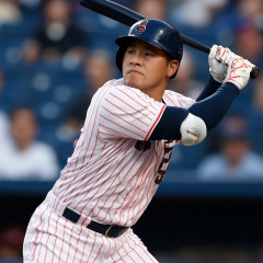 1: ネギうどん ★ GXoprn3y9 2026-04-19 12:25:24 アスレチックス−ホワイトソックス(18日、サクラメント)米大リーグ、ホワイトソックスの村上宗隆内野手(26)がアスレチックス戦に「2番・一塁」で出場し、七回に2戦連発となる中堅越えの7号ソロを放った。敵地は再び騒然とし、ア・リーグ本塁打ランキングでは3位タイに浮上。シーズン換算は54本ペースとなった。 MLB公式サイトのサラ・ラングス記者はデビュー21試合で7本塁打は2018年大谷翔平(エンゼルス)を抜き、日本選手史上最多記録と伝えた。大谷は打者としてデビューしてから21試合目で5本塁打だった。この日は左腕ハリスの決め球カーブを体を泳がされながらも完璧に仕留め、打球速度103・9マイル(約167・2キロ)、飛距離415フィート(約126・4メートル)、角度31度の放物線を描いた。村上は17日の同戦で七回2死満塁で3試合ぶりの一発となる6号満塁本塁打。バックスクリーンを越える特大弾だった。剛腕アルバラードの98・2マイル(約158キロ)の直球を完璧に仕留めた打球だった。 ア・リーグの本塁打王争いはトップがジャッジ(ヤンキース)とアルバレス(アストロズ)の8本。3位タイにはトラウト(エンゼルス)とライス(ヤンキース)の2人で、そうそうたる面子に村上の名前が並んでいる。…
