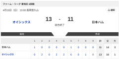 【試合結果】オイシックスvs日本ハム2軍 13-11|東地区6回戦|個人成績|4/19