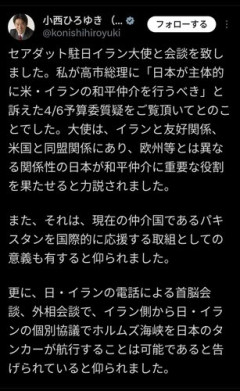 1: 2026/04/19(日) 11:01:31.65 ID:CPIvoAVLr なんで通ってないんやろなあ…😭日・イランの電話による首脳会談、外相会談で、イラン側から日・イランの個別協議でホルムズ海峡を日本のタンカーが航行することは可能であると告げられていると仰られました。 imgur.com/Q1tHIid 2: 2026/04/19(日) 11:05:49.35 ID:93dXyU7m0 イラン「日本は通っていいよ(これでアメリカ孤立の第一歩やw)」 日本「いやいい、通すなら一気に全員じゃないと」イラン「」 3: 2026/04/19(日) 11:03:40.72 ID:NEKhKTRv0 あやしいソースかと思ったらガチソースやんけ…