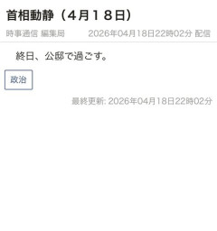 1: ネギ速の名無しさん 2026/04/19(日) 14:30:12.57 ID:QXYJmT9+0 G7(米除く)で唯一首脳が欠席 imgur.com/WMulVMR 2: ネギ速の名無しさん 2026/04/19(日) 14:30:26.17 ID:QXYJmT9+0 代理のおっさん imgur.com/dCOOs8U 3: ネギ速の名無しさん 2026/04/19(日) 14:32:19.61 ID:UvYWQUdn0 国会欠席して別な仕事してるんじゃなかったの!?…
