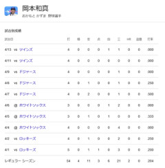 岡本和真さん、本日2安打1打点で打率.205 OPS.576