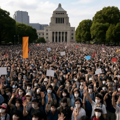 1: 少考さん ★ oFiTiPRW9 2026-04-19 19:25:24 日曜の国会前に3万6千人 デモに参加、戦争反対や護憲訴える [東京都]:朝日新聞 2026年4月19日 18時00分 棚橋咲月 国会前で改憲に反対するデモが開かれ、憲法9条を象徴する「9」の数字が掲げられた=2026年4月19日午後1時41分、東京都千代田区、西岡臣撮影 国会前や大阪など全国各地で19日、憲法9条改正などに反対するデモがあった。日曜の昼、多くの人が集い、声を上げた。 今回の国会前デモは「NO WAR! 憲法変えるな!4・19国会正門前大行動」と題し、市民団体「戦争させない・9条壊すな! 総がかり行動実行委員会」と「9条改憲NO! 全国市民アクション」が共催した。団体側によると、安保関連法案の成立後、毎月19日に同法廃止や憲法改正反対を訴えるために開いている。 この日は約3万6千人(主催者発表)が参加したという。参加者たちはプラカードやボードを手に「戦争反対」「高市政権は憲法守れ」などと声を上げた。 (略) ※全文はソースで…