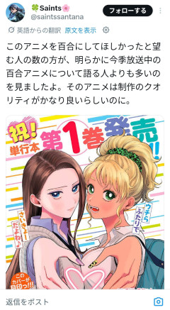 まあたしかに紛らわしい表紙 ピックアップ 【画像】プリキュア、公式の下着姿wwwww 【画像】中野三玖とのエッチwwwww 【画像】こうやってアニメとかでスカートが鉄壁みたくなって絶対パンツ見えないやつが腹立つんだがwwwww 【画像】チアガール騎乗位とかいうドチャシコ要素wwwww 【画像】JC「文化祭の出し物だからってこんなエッチは格好しなくちゃいけないなんて///」 【画像】女の子「おじさん、パパになってよ」 【画像】ヱロ漫画大臣ワイ、子供同士のセッ〇スを法律により禁止にするwwwww 【画像】おちん〇んフルーツタルトとかいうロリコンアニメwwwww 百合要素も匂わせ程度にはあるからいいじゃん たしかに 二人ともこっち見てるし百合ではないだろ これ いつになったら学ぶんだろうね つか海外で放送されてんの? アマプラで見てるんじゃね もしくはまた違法視聴 完全にノーミーってなんだよ 外人のチー牛みたいなもん 嫌なら見るなよ スレタイだけで笑える わろた ぴこたん 引用元:…