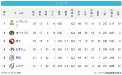 :名無し 2026/04/19(日) 22:01:39.481 ID:5MCri1C3d 混パやな 4 :名無し 2026/04/19(日) 22:02:17.742 ID:5MCri1C3d チームWAR 4.19時点野手/投手/合計3.0 2.1 5.1 日本ハム3.9 0.8 4.7 阪神2.3 2.2 4.5 楽天1.6 2.5 4.1 西武2.4 1.6 4.0 オリックス3.1 0.5 3.6 ソフトバンク1.6 2.0 3.6 ヤクルト1.6 1.8 3.4 DeNA1.0 1.6 2.6 巨人0.5 1.4 1.9 ロッテ0.7 0.6 1.3 中日-0.5 1.5 1.0 広島 5 :名無し 2026/04/19(日) 22:02:51.519 ID:4AgkZO.yZ >>4西武の野手の詐欺を許すな 8 :名無し 2026/04/19(日) 22:03:14.361 ID:bGUwzieo0 >>4なんでセリーグとWARこんなに差があるんや 16 :名無し 2026/04/19(日) 22:06:07.085 ID:dEcjGV6AS >>4西武が投手war一位で野手もそこそこって本当に価値のないデータだな…