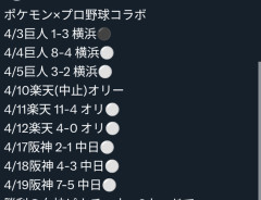転載元: undefined1: 名無し 2026/04/20(月) 01:15:00.706 ID:MfKGGzyS2 ピカカスほんま覇権やな※ポケモン×プロ野球コラボ4/3巨人 1-3 横浜⚫️4/4巨人 8-4 横浜⚪️4/5巨人 3-2 横浜⚪️4/10楽天(中止)オリー4/11楽天 11-4 オリ⚪️4/12楽天 4-0 オリ⚪️4/17阪神 2-1 中日⚪️4/18阪神 4-3 中日⚪️4/19阪神 7-5 中日⚪️勝利の女神ピカチュウ、3カードで7勝1敗.875www7連勝wwwwつよい(確信)— ばっさー (@mrbaseballwing) April 19, 2026 2: 名無し 2026/04/20(月) 01:16:02.648 ID:MfKGGzyS2 火曜からは鬼門のカープや 3: 名無し 2026/04/20(月) 01:18:09.529 ID:ewWfqQuMs 下3球団の日程遠すぎやろ…