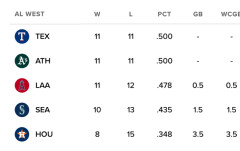 アリーグ西地区、歴史的な大混戦w w w w w w w w w w w w w w w w w w w w w w w w w w w w w w w w w w w w w w