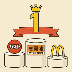 1: muffin ★ 93XmZrOd9 2026-04-20 14:13:42 2026年4月20日 11時0分 外食チェーンの値上げラッシュが止まらない。原材料費、人件費、エネルギーコスト。あらゆるものが上がるなか、消費者の財布のひもが固くなっている。「おいしい」だけでは選ばれない。“この値段”で、お腹だけではない満足感があるのか。10代から80代の男女1000人に聞いた「コスパが良い」と思う外食チェーンランキングは? 12位 日高屋 10位 はま寿司(同率) 10位 スシロー(同率) 8位 餃子の王将(同率) 8位 やよい軒(同率) 7位 松屋 6位 丸亀製麺 5位 ガスト 4位 すき家 3位 吉野家 2位 マクドナルド 1位 サイゼリヤ 圧倒的1位はサイゼリヤ。社長が断固として値上げをしない方針を掲げるイタリアンレストランは、おひとり様でも家族でも、食事でも飲みでも。 「2品頼んでも他のお店の1品分くらいの料金だから」(25歳・女性)、「低価格でありながら、イタリアから直輸入した食材を使っていて本格感がある。単なる“安かろう悪かろう”ではないコスパの良さ」(28歳・女性)、「何もかも値上がりする時代に300円少しで食べられるのがすごい」(70歳・女性)、「家族3人で3000円以下で満足できる。特にミラノ風ドリアは秀逸」(55歳・男性)。10代から年配層まで、世代を問わない支持が際立った。 全文はソースをご覧ください…